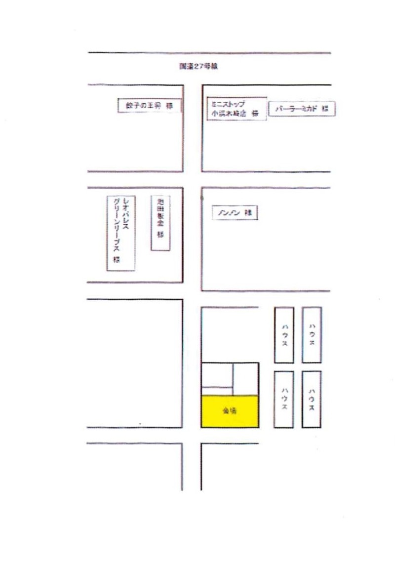 小浜市多田の王将様とミニストップ様の間の道をまっすぐにお越しくだされば分かりやすいかと思います。