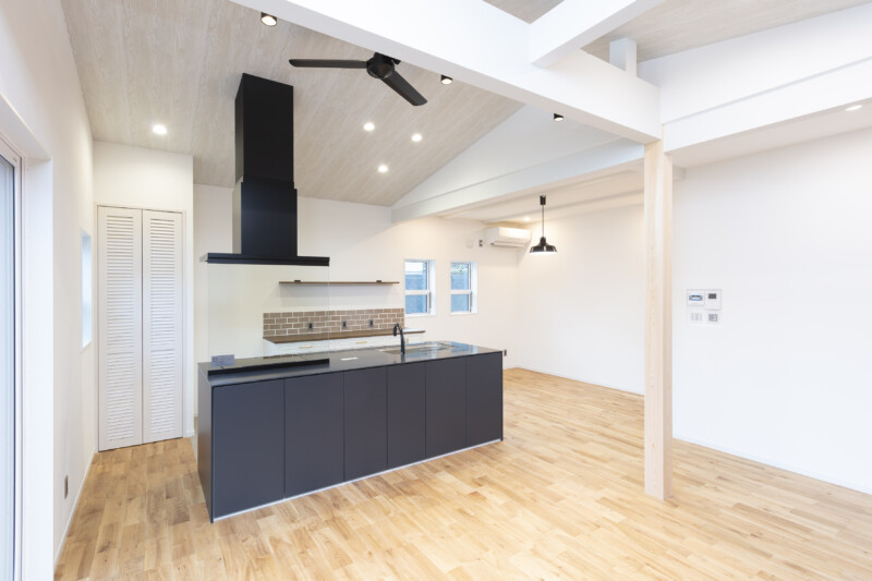 リビングは勾配天井を生かして、高さを出し、広い空間になりました。